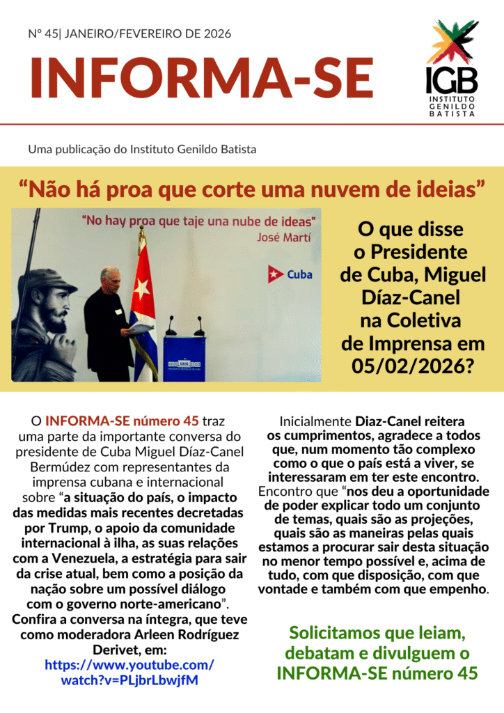 O INFORMA-SE número 45 traz parte da conversa do Presidente de Cuba, Manuel Diaz-Canel Bermúdez com a imprensa cubana e internacional. Uma conversa muito importante não só para os povos da América Latina e Caribe, mas do mundo. Com serenidade, firmeza, sabedoria e dignidade Diaz-Canel, representando o heróico povo cubano, fala sobre a situação do seu país com a intensificação das medidas brutais e desumanas do governo dos Estados Unidos, que impõe o bloqueio energético, impedindo que chegue petróleo à ilha e ameaça com intervenção militar, numa tentativa de derrotar a Revolução Cubana. Dentre outros temas fala, também, sobre a relação Cuba-Venezuela e os frutos da mesma não só para os dois países, mas para a América Latina e Caribe. Fala sobre a solidariedade internacional com Cuba nesse momento e sobre um possível diálogo com o governo estadunidense. SOLICITAMOS QUE LEIAM E COMPARTILHEM O INFORMA-SE 45.